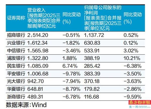 2025年三季度,股份制银行经营业绩呈现出营收分化、净利润喜忧参半的格局。