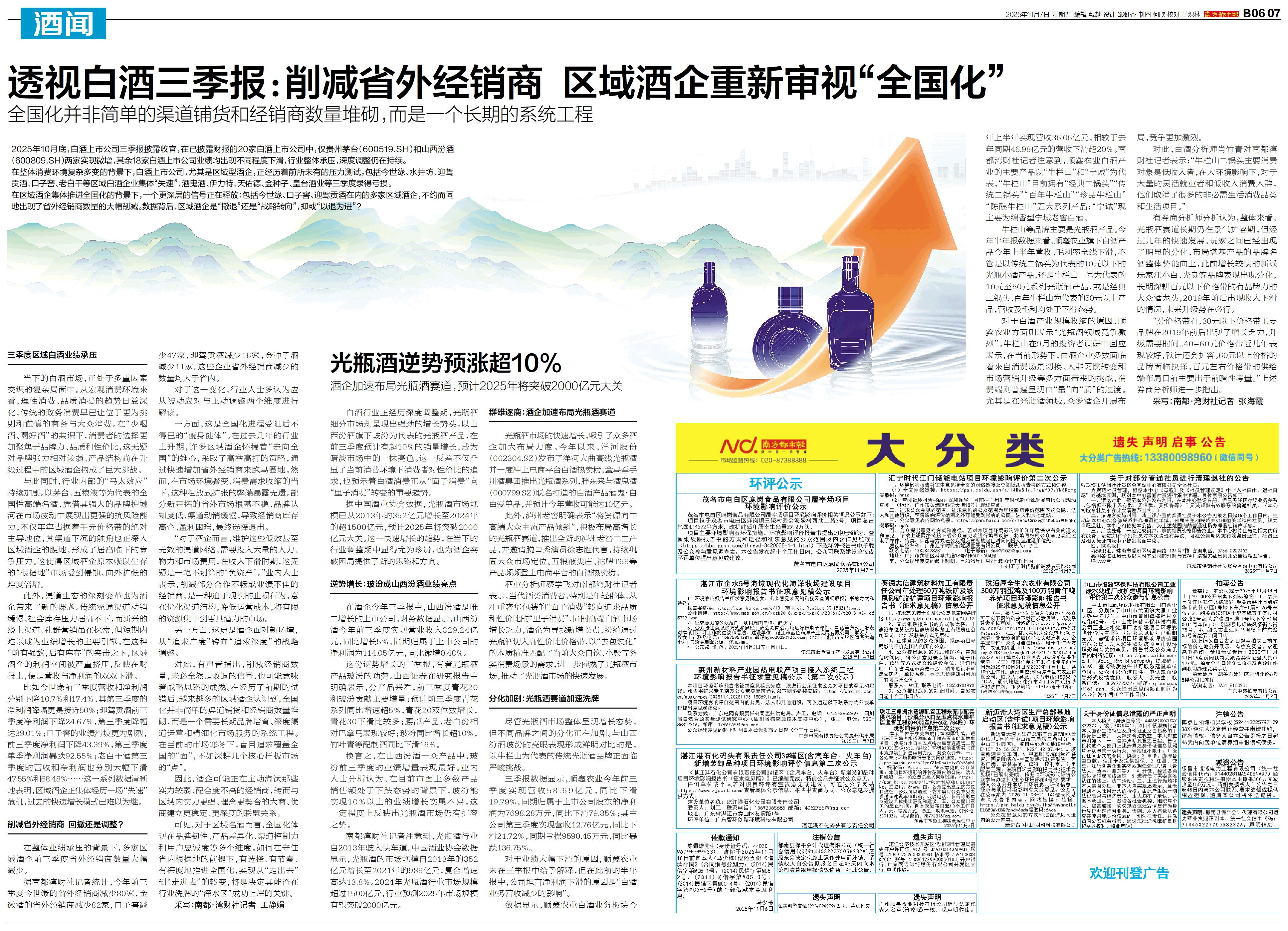 透视白酒三季报:削减省外经销商 区域酒企重新审视“全国化”
