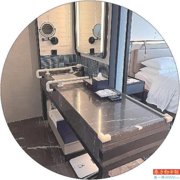 酒店客房内部关键点位设置盲文标识,加装了防撞角等。