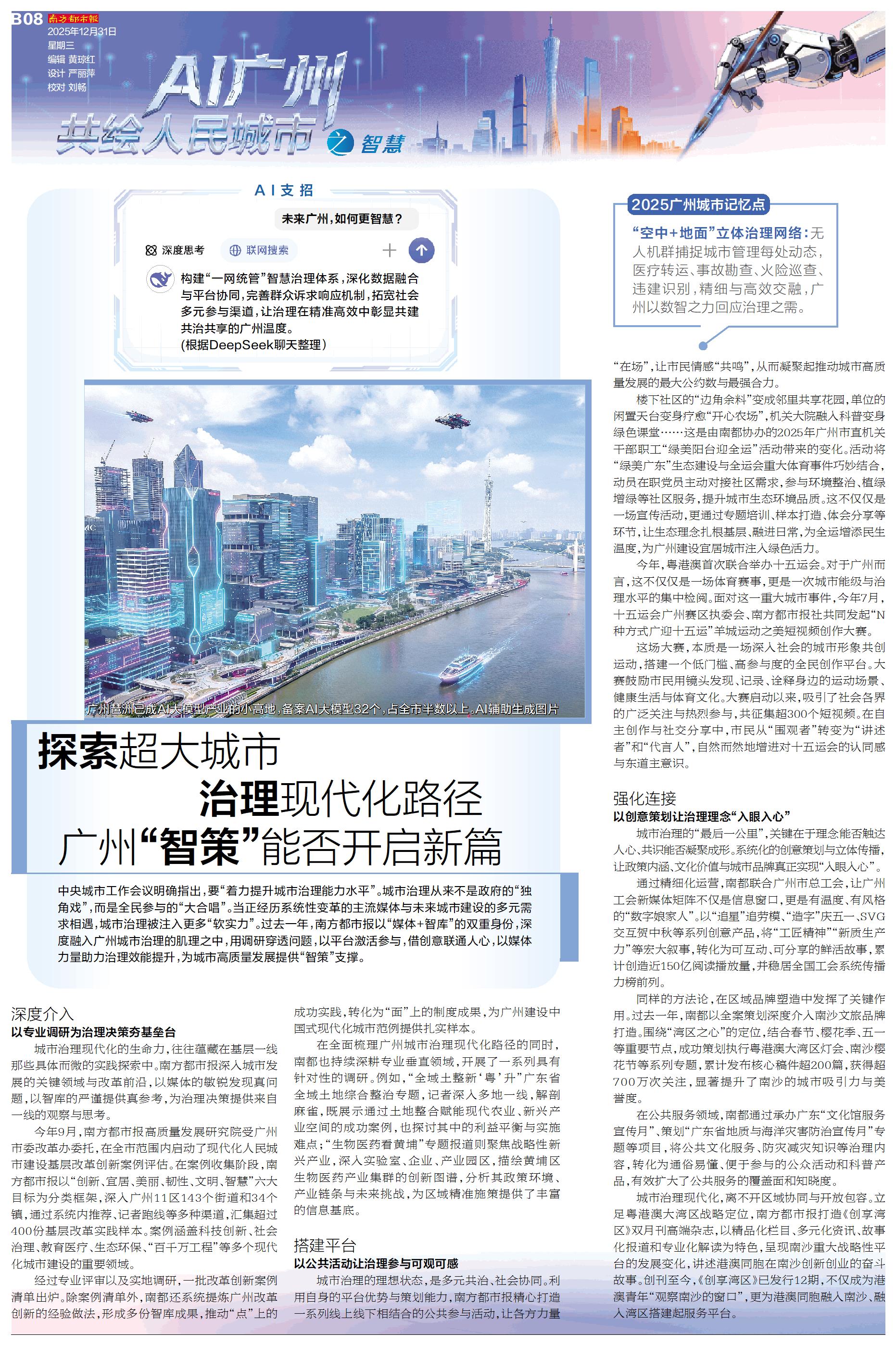 AI广州共绘人民城市之智慧 中央城市工作会议明确指出,要“着力提升城市治理能力水平”。城市治理从来不是政府的“独角戏”,而是全民参与的“大合唱”。当正经历系统性变革的主流媒体与未来城市建设的多元