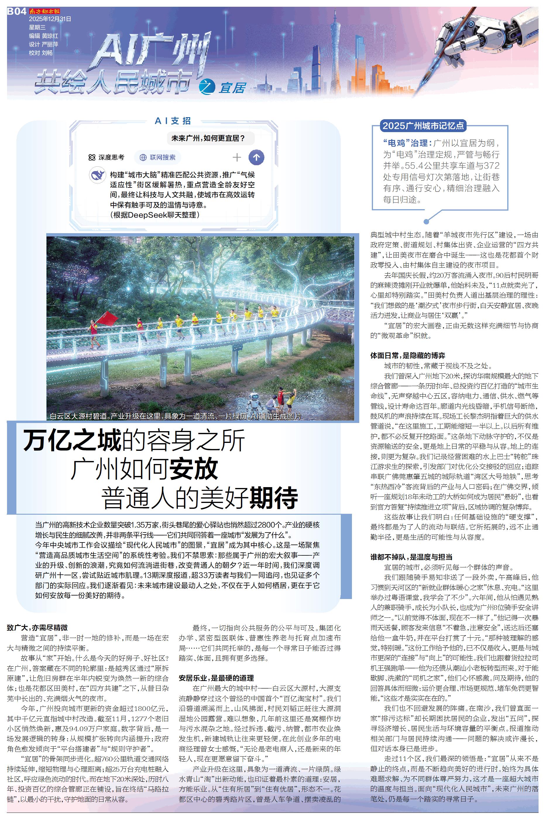 AI广州共绘人民城市之宜居 当广州的高新技术企业数量突破1.35万家,街头巷尾的爱心驿站也悄然超过2800个。产业的硬核增长与民生的细腻改善,并非两条平行线——它们共同回答着一座城市“发展为了什