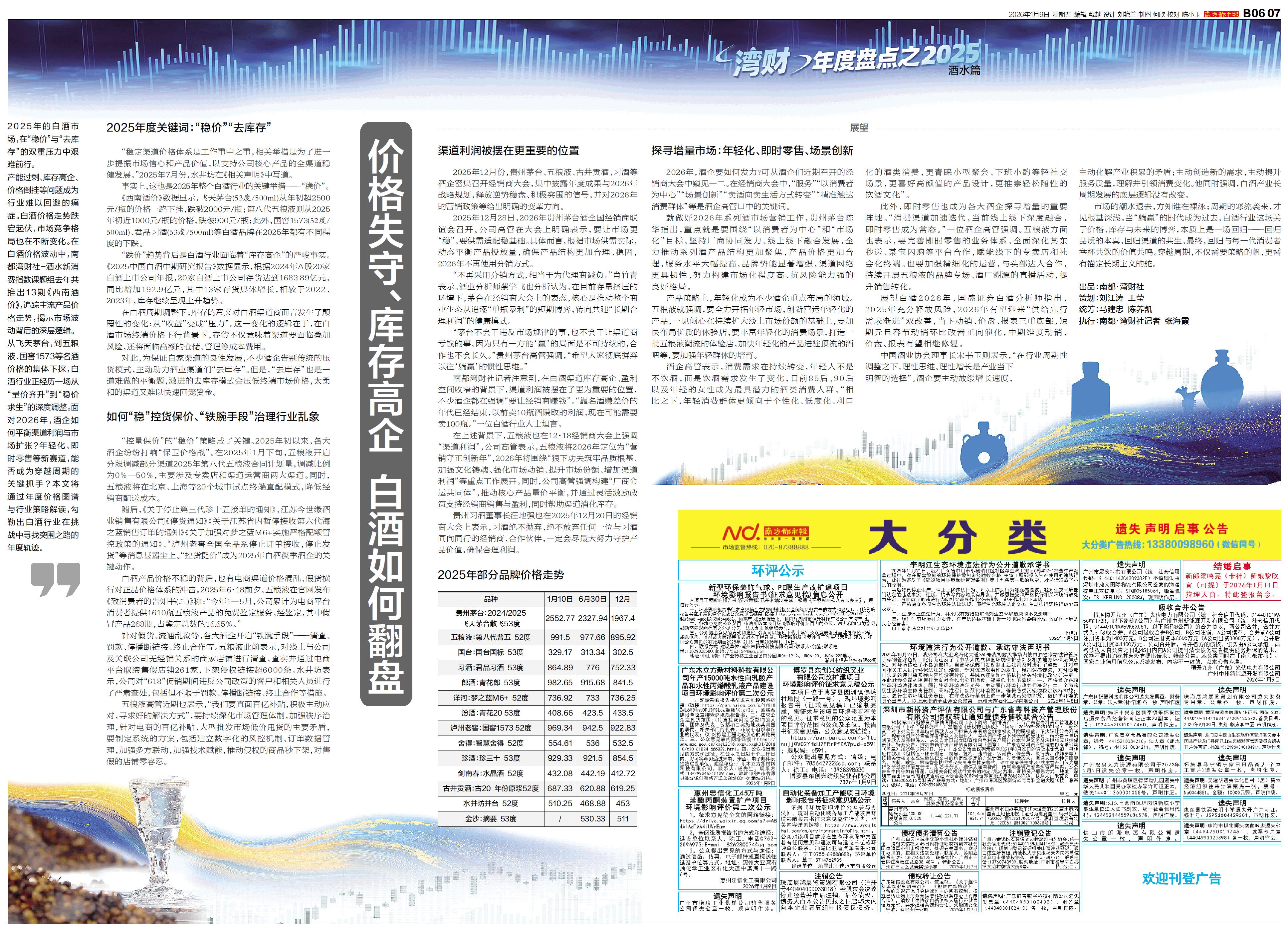 酒水篇 2025年的白酒市场,在“稳价”与“去库存”的双重压力中艰难前行。 产能过剩、库存高企、价格倒挂等问题成为行业难以回避的痛症。白酒价格走势跌宕起伏,市场竞争格局也在不断变化。在白酒价格