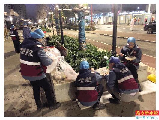 5. 医护人员蹲在雷神山医院外吃盒饭。