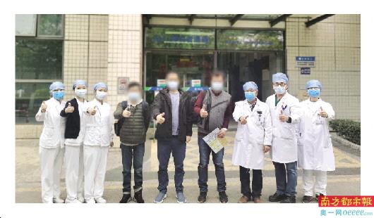肝病医学中心医护人员与出院患者合影。