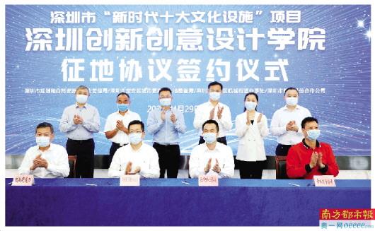 4月29日上午,宝安区航城街道举行深圳创新创意设计学院征地协议签约仪式。这意味着总用地面积达36.4万平方米的深圳创新创意设计学院全面完成土地整备,工程可以如期入场施工。
