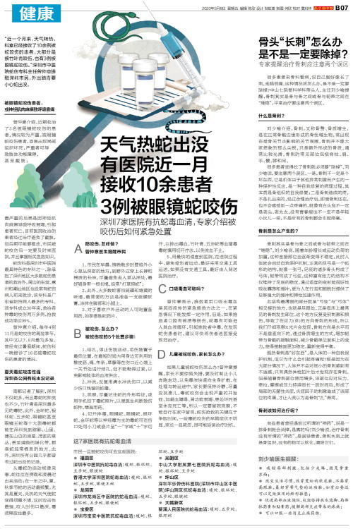 很多患者觉得长了骨刺就必须要“除掉”,刘少喻说,要注意两个误区。一是,骨刺不一定是个坏东西,它是机体由于其他异常刺激而产生的一种保护性反应,是一种自我修复的病理过程,其本质是骨组织的自我修复;二是骨刺造成的疼,不是扎出来的,经过合理治疗后,即使骨刺还在,也不会感受到一点疼痛的。就像有白头发不一定是老头、老太太,没有青春痘也不一定不是年轻小伙儿一样,不是所有的骨刺都会引起疼痛。