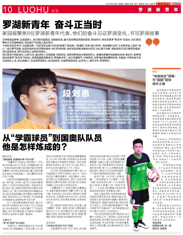 段刘愚“学霸球员”“同年龄段最好的球员”……打开搜索引擎输入他的名字,会跳出大量这样的字眼和评价。有专业人士说他“已是国家队水平”“身体太适合踢球”,更有人评价他踢起球来“颇有灵气、脚下有活”。这