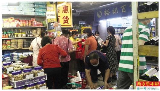在实惠百货店内,人头攒动,每个人都提着至少一个购物篮,多则有五六个,且几乎都是结伴同行。那边厢顾客在火热选购,这边厢店员忙着往货架补充产品,这样的场景似乎是中英街旅游、经济复苏的缩影。在走访过程中,南都记者发现,深方开业的商店都备足了货品,且工作人员服务热情周到;部分暂未开业的商铺,也有的重装了店面,并且组织员工加急上架货物;未开铺的港方店家也有人趁着这个时间,搬来长梯擦亮招牌,甚有蓄势待发之意。