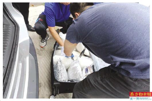 4月15日凌晨,深广两地警方同时出击,在这帮贩毒团伙接货时,将7名骨干成员全部抓获。贩毒团伙装毒品的有2台5吨以上的大货车,他们在番禺的一个修理厂定做了20厘米高的暗格装在车底,毒品就一块块地放在里面。北京吉普有8到10辆,暗格装在靠背后面。
