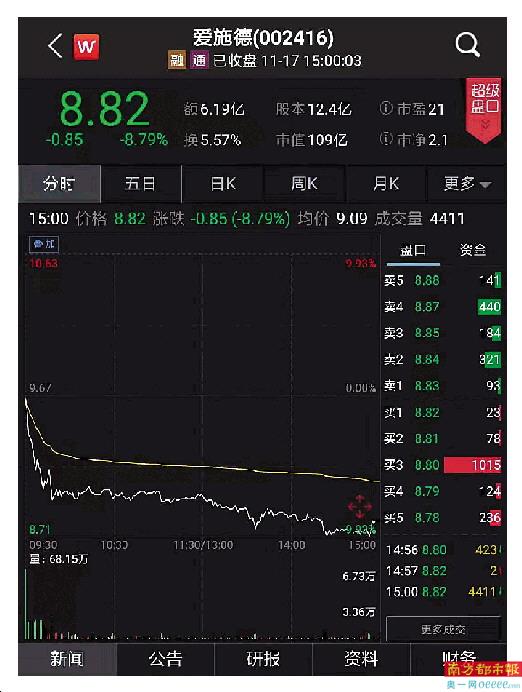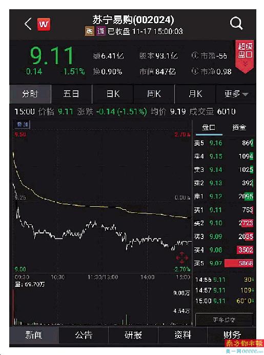 另一接盘企业爱施德股价16日上涨6.85%,17日高开后一路下行,收跌8.79%,报8.82元/股。公开资料显示,参与收购荣耀的共青城酷桂投资合伙企业(有限合伙)为爱施德子公司。爱施德系荣耀线下重要经销商。苏宁易购则收跌1.51%。