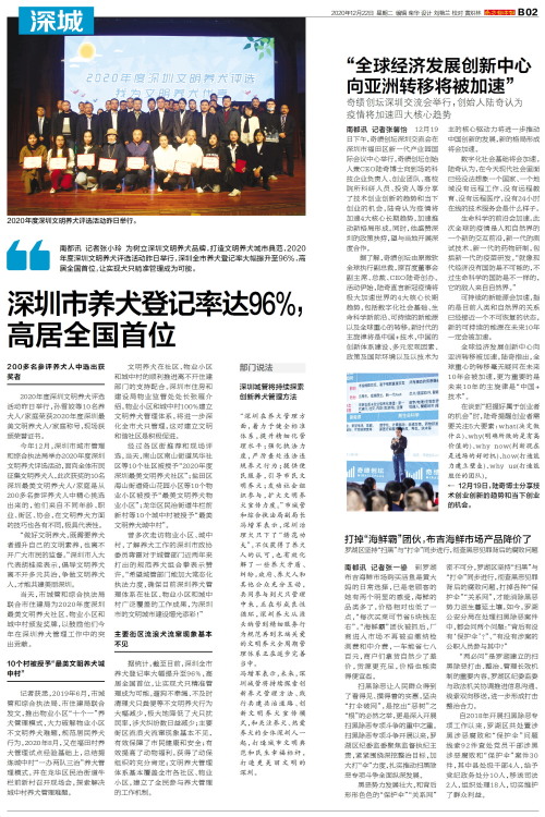 南都讯 记者张小玲 为树立深圳文明养犬品牌,打造文明养犬城市典范,2020年度深圳文明养犬评选活动昨日举行,深圳全市养犬登记率大幅提升至96%,高居全国首位,让实现犬只精准管理成为可能。200多名参评