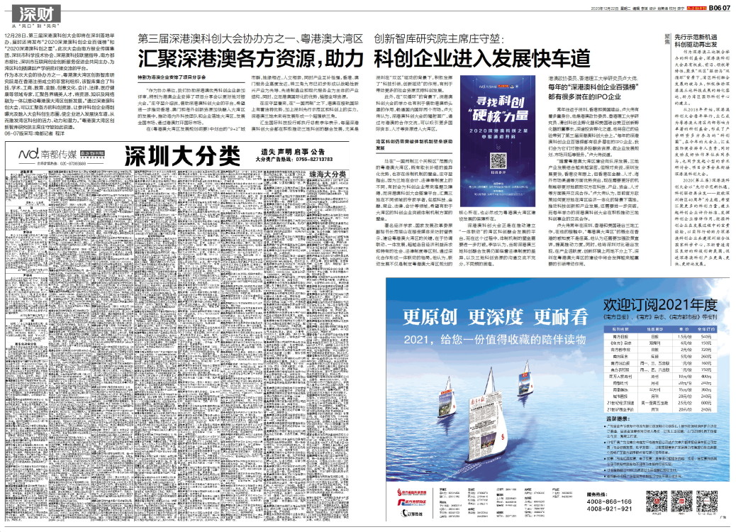 12月28日,第三届深港澳科创大会即将在深圳落地举办,届时还将发布“2020深港澳科创企业百强榜”和“2020深港澳科创之星”。此次大会由南方报业传媒集团、深圳市科学技术协会、深港澳科技联盟指导,南方