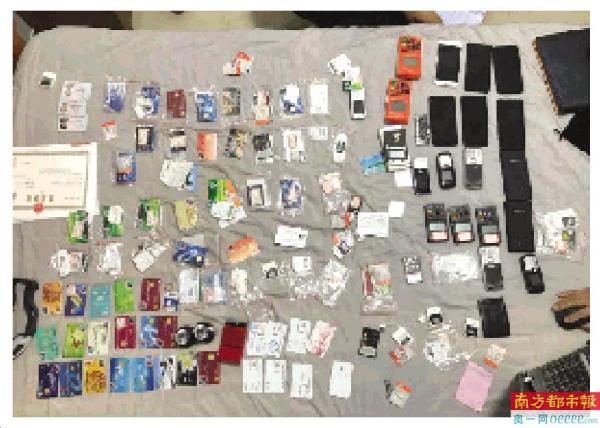 反诈中心在工作中缴获的赃物及作案工具。