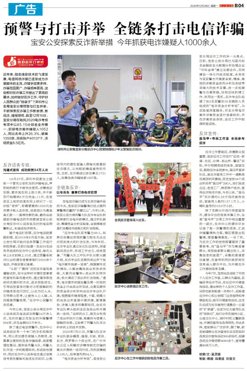 近年来,随着信息技术的飞速发展,电信网络诈骗已逐渐成为诈骗案件的主流。诈骗手段更多样、诈骗范围更广、诈骗频率更高,这些都对反诈骗工作提出了更高的要求。如何做好反诈工作,守护好人民群众的“钱袋子”?深圳