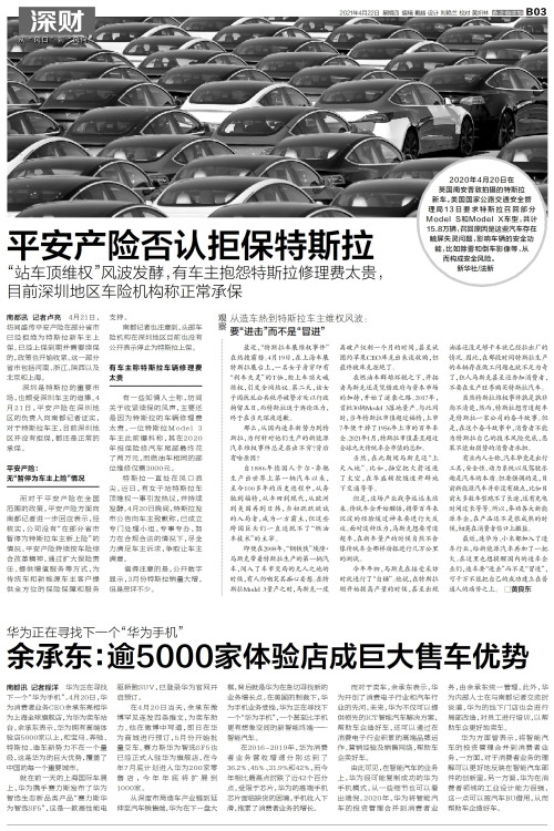 南都讯 记者程洋 华为正在寻找下一个“华为手机”。4月20日,华为消费者业务CEO余承东亮相华为上海全球旗舰店,为华为卖车站台。余承东表示,华为拥有高端体验店5000家以上,和宝马、奔驰、特斯拉、
