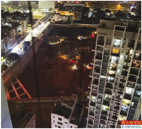 4月17日零点过后,深圳市罗湖区东门街道湖贝片区旧改项目仍在施工。周边居民反馈该项目夜间施工噪音扰民情况严重。南都记者 谢萌 摄