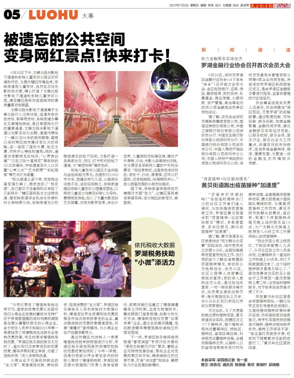 6月30日下午,文锦北路光影地下通道和东晓儿童友好公园正式开通和开放。为提升辖区环境品质,东晓街道用儿童友好、自然生态与光影时尚元素,精心打造了文锦北路光影地下通道和东晓儿童友好公园,满足辖区居民