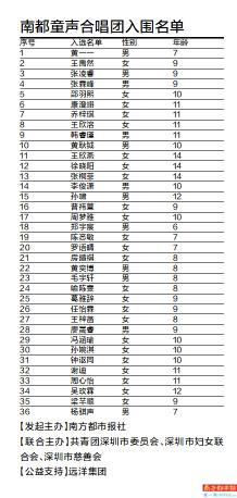 南都讯 记者陈荣梅 7月30日,南都发布“致敬城市建设者·南都童声合唱团”召集令。过去半个月,我们收到了海量的报名申请。8月15日,经过3位专业评委的“云海选”,36位“圳少年”成了本届童唱团的成员。接下来一周,南都将邀请专业音乐老师对合唱团进行培训,教授声乐知识、演唱曲目等。经过培训及录制,南都童声合唱团将通过最美童声,以短视频的形式与大家见面,呈现“最潮中国观,看我圳少年”精神气。