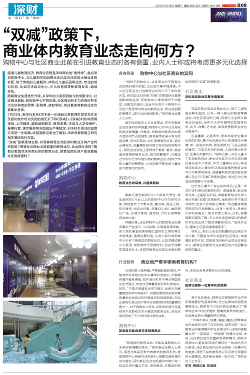 “双减”政策下,商业体内教育业态走向何方?