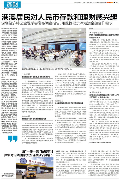 深圳经济特区金融学会日前发布《深港金融合作市场需求问卷调查报告(2021)》(以下简称《调查报告》),且组织召开发布会暨深港金融合作内部研讨会,围绕问卷调查揭示的深港金融合作市场需求,就精准施策、