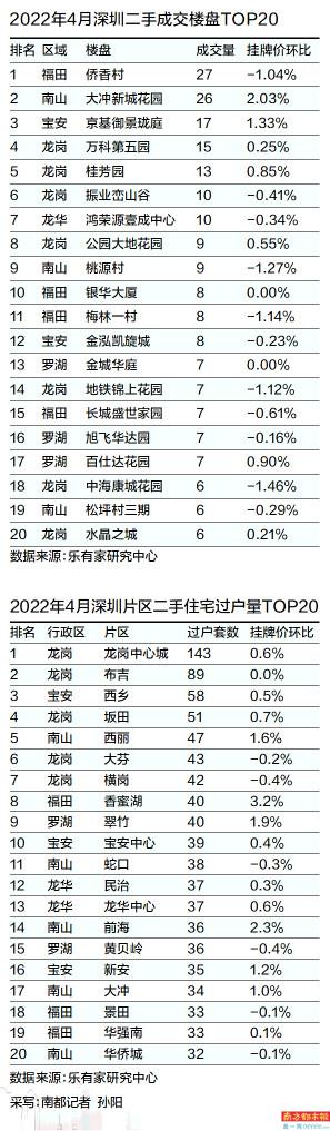 除此之外,龙岗的万科第五园、桂芳园、公园大地花园、水晶之城,罗湖百仕达花园等挂牌价均出现了上调。值得一提的是,四月二手成交量排名前5的楼盘中4个楼盘实现了挂牌价环比上涨,量价齐升。