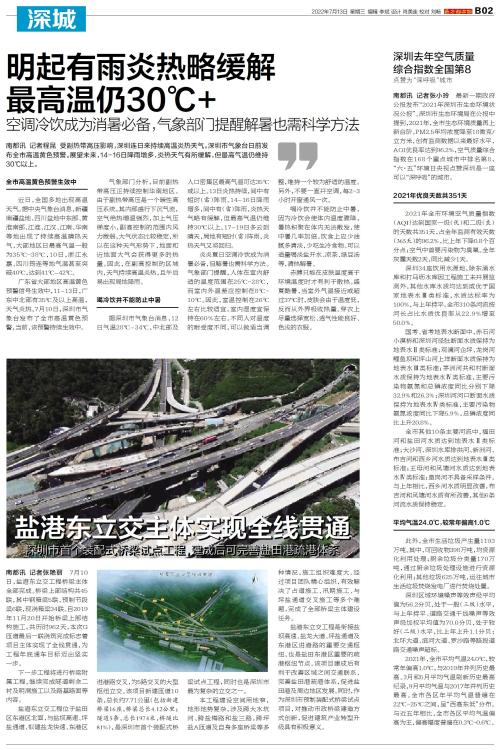 南都讯 记者张小玲 最新一期政府公报发布“2021年深圳市生态环境状况公报”。深圳市生态环境局在公报中提到,2021年,全市生态环境质量再上新台阶。PM2.5年均浓度降至18微克/立方米,创有监测