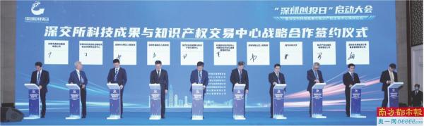 “深圳创投日”启动大会当天举行了深交所科技成果与知识产权交易中心战略合作签约仪式。