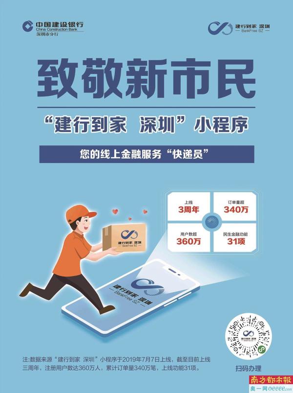 作为国有大行,深圳建行始终从客户的体验出发,不断丰富、创新产品和服务模式,提高服务质效,构建贯穿新市民全生命周期的金融服务,全面提高新市民金融服务的幸福感与安全感。一份小小的快递件,打破了我们和客户在时空上的隔阂,传递到服务的同时,也传递了我们心意:“客户在哪里,建行服务就在哪里”。