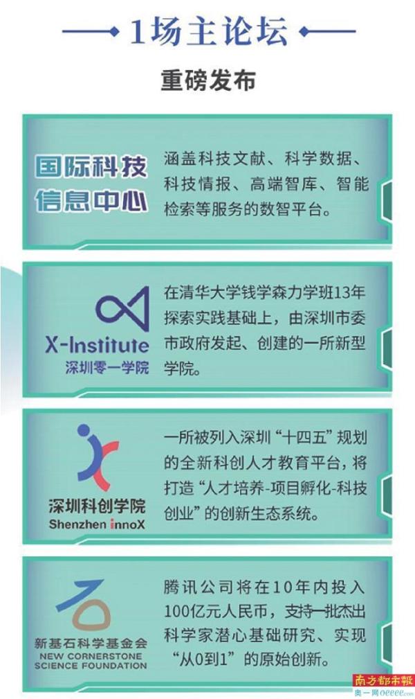 本届论坛将集中发布一批具有原始创新性、重大突破性、前沿引领性的重大创新成果和举措,包括国际科技信息中心、深圳零一学院、深圳科创学院等科技创新平台的揭牌,新基石科学基金会落户等。