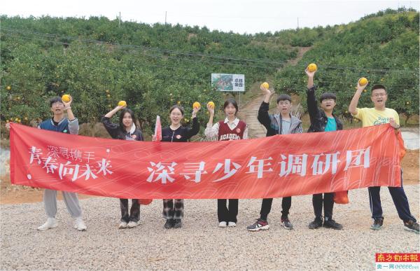 在深寻两地的学生们调研期间,寻乌当地正在举办脐橙丰收节。在文峰乡幸福小镇电子商务公共服务中心的直播基地内,一件件寻乌优质农产品通过链接转化成一笔笔订单,从寻乌去往大湾区乃至全国各地,其中最快4小时就能送到深圳。