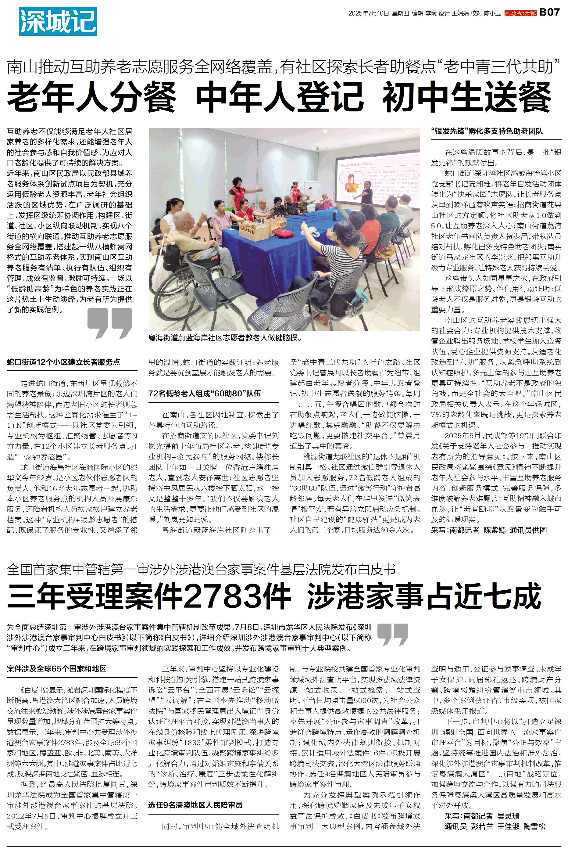 互助养老不仅能够满足老年人社区居家养老的多样化需求,还能增强老年人的社会参与感和自我价值感,为应对人口老龄化提供了可持续的解决方案。 近年来,南山区民政局以民政部县域养老服务体系创新试点项目为契