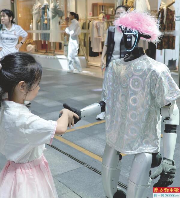 在宇新奇智能机器人体验馆,观众可以与宇树双足机器人面对面实时互动。 南都记者 张小玲 实习生 何昕怡 摄