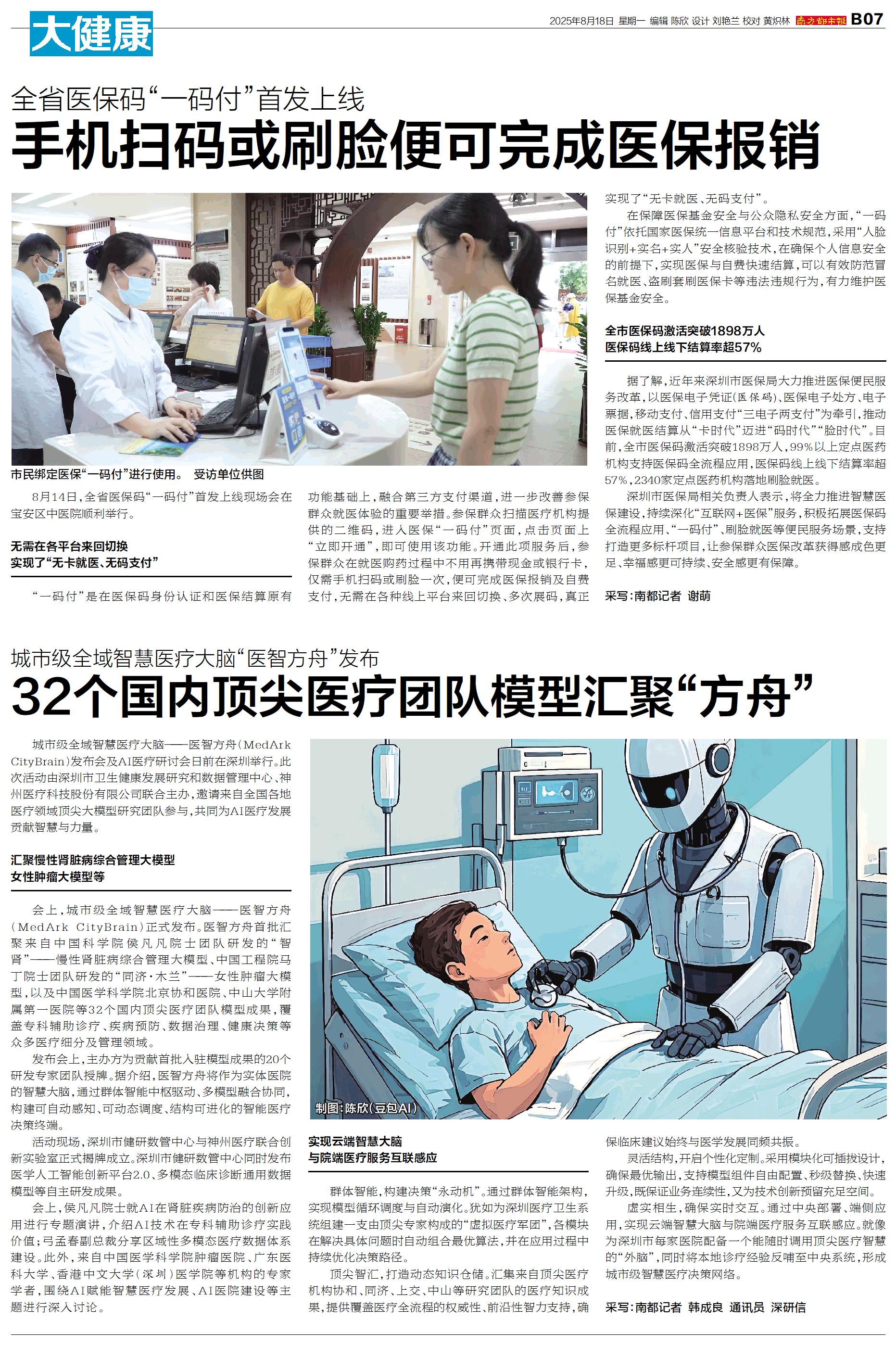 8月14日,全省医保码“一码付”首发上线现场会在宝安区中医院顺利举行。 无需在各平台来回切换 实现了“无卡就医、无码支付” “一码付”是在医保码身份认证和医保结算原有功能基础上,融合