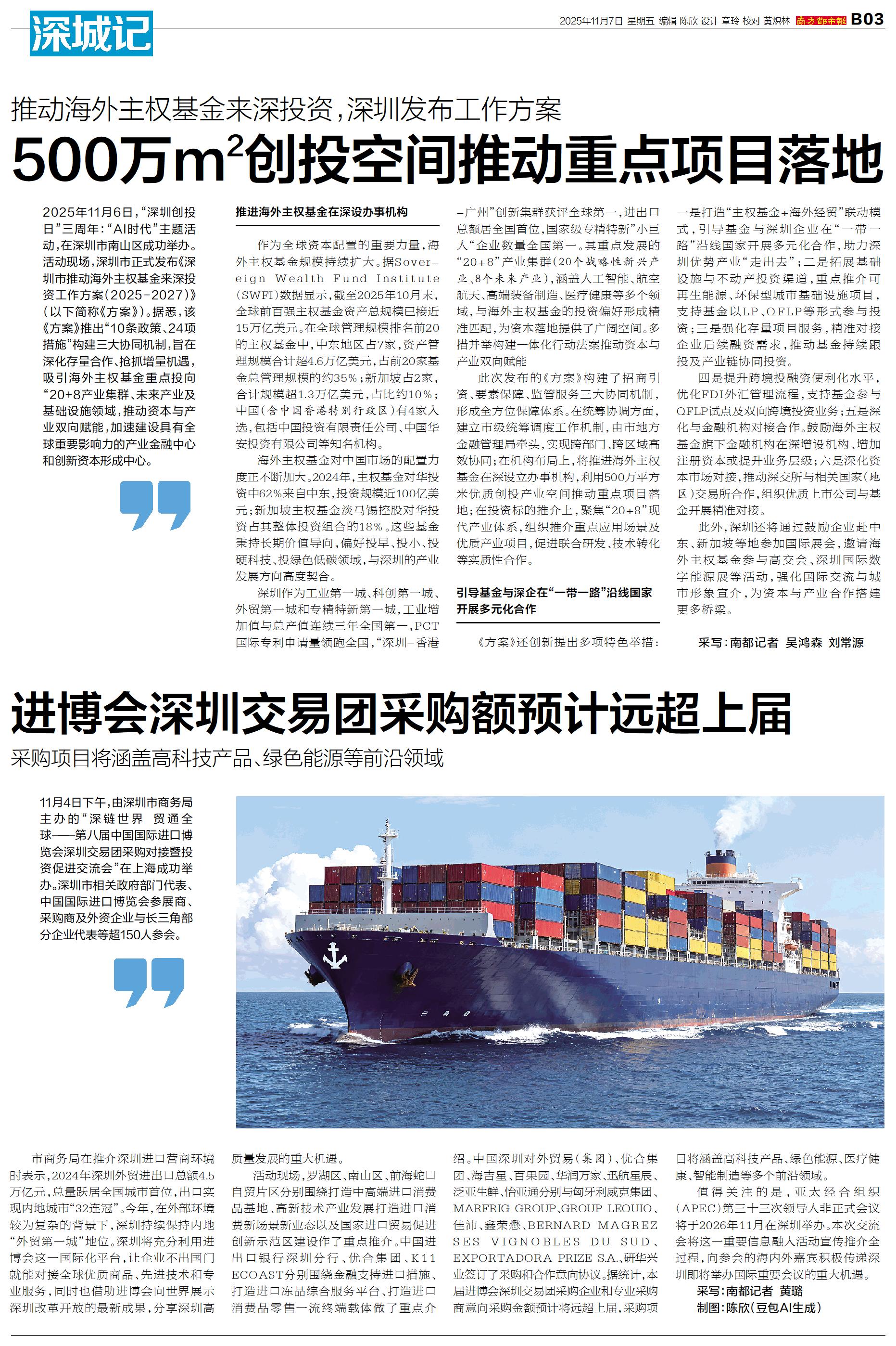 2025年11月6日,“深圳创投日”三周年:“AI时代”主题活动,在深圳市南山区成功举办。活动现场,深圳市正式发布《深圳市推动海外主权基金来深投资工作方案(2025-2027)》(以下简称《方案》