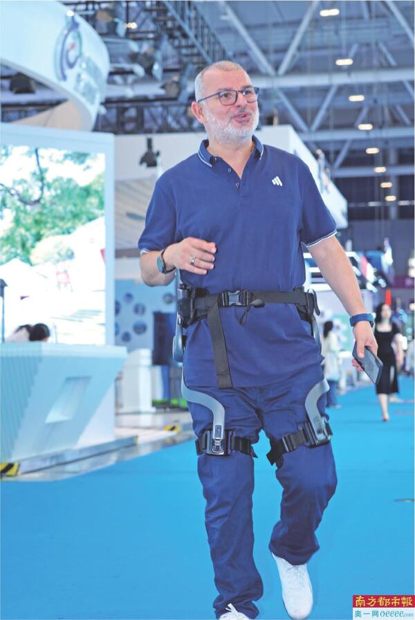 高交会上,锦鹏机器人的外骨骼产品首次亮相便吸引观众体验。这款重量不足两公斤的穿戴式设备,能为行动不便者提供动力辅助,轻松应对爬楼、登山等场景。 南都记者 刘嘉琳 摄