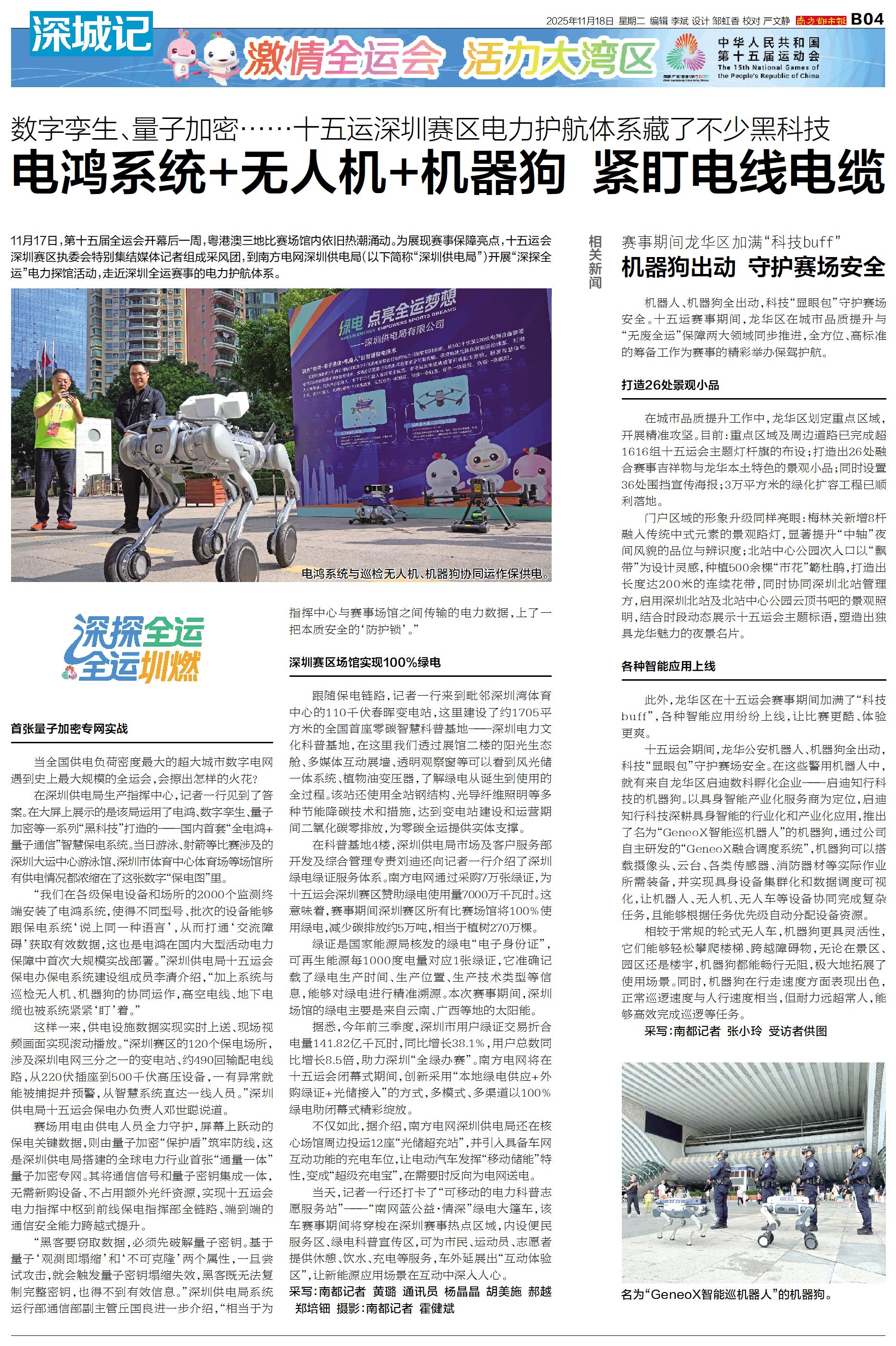 11月17日,第十五届全运会开幕后一周,粤港澳三地比赛场馆内依旧热潮涌动。为展现赛事保障亮点,十五运会深圳赛区执委会特别集结媒体记者组成采风团,到南方电网深圳供电局(以下简称“深圳供电局”)开展“