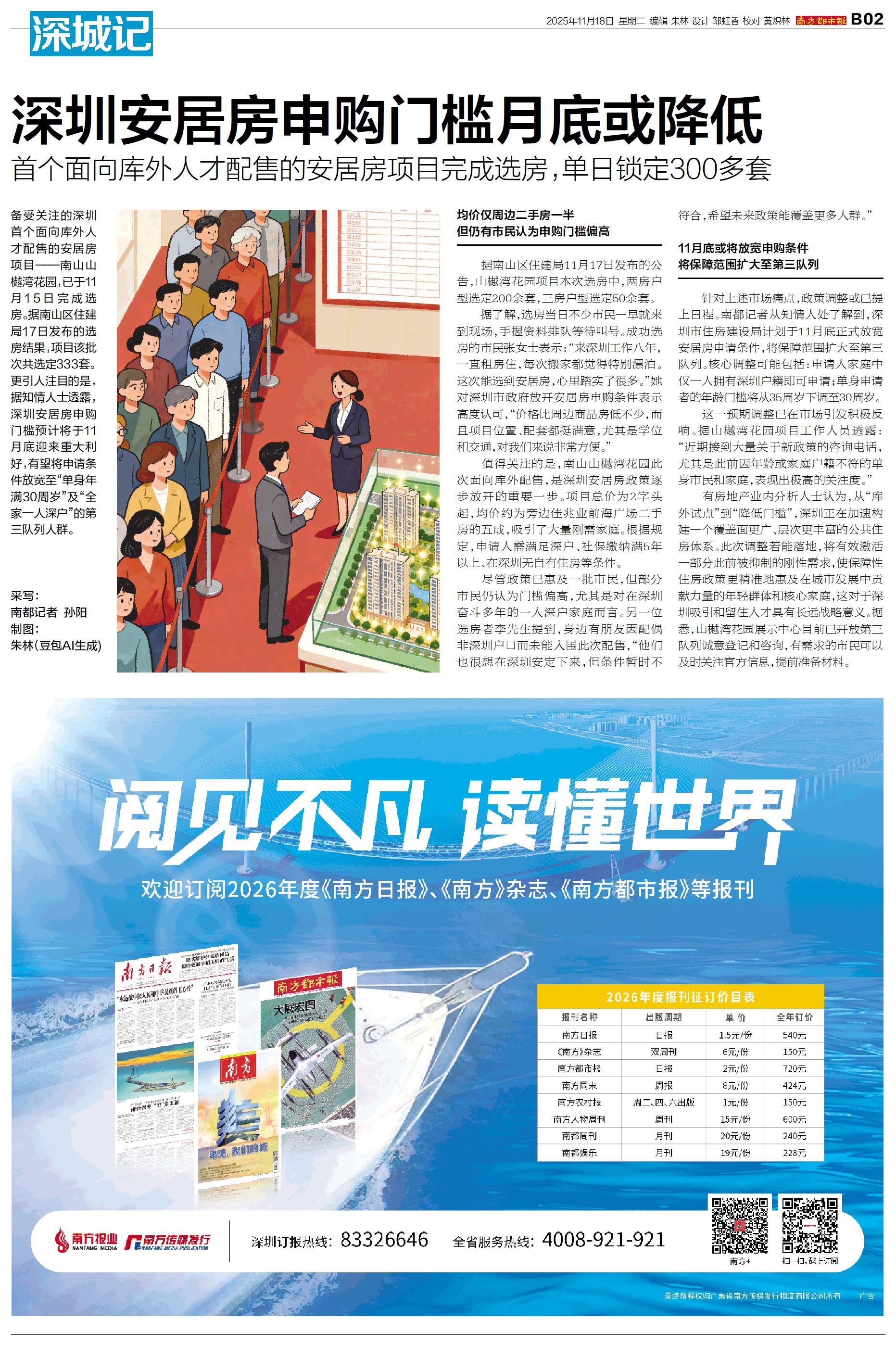 备受关注的深圳首个面向库外人才配售的安居房项目——南山山樾湾花园,已于11月15日完成选房。据南山区住建局17日发布的选房结果,项目该批次共选定333套。 更引人注目的是,据知情人士透露,深圳安