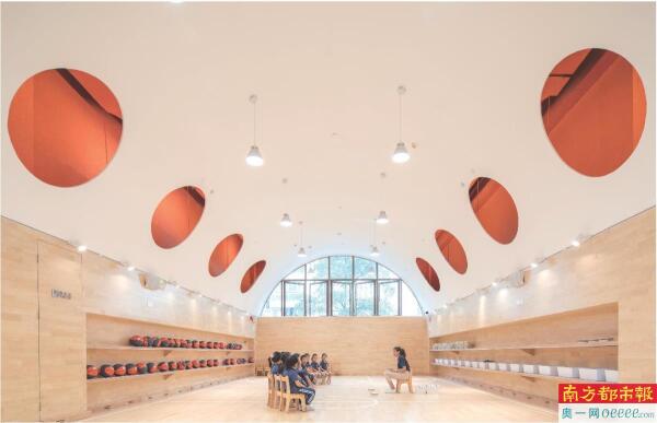 最后是变“冰冷建筑”为“儿童友好对话”场域,实现基础功能“焕新”。以“学生立场”为核心,通过自然采光、安全通道等设计,营造更开放、互动的成长环境。如九祥岭幼儿园将原有的教室外廊并入室内教学生活单元,将原本净宽不足1米的走廊拓宽至2.4米,并保留原立面上的拱形元素作为幼儿园特有场所记忆,不仅有效增容了教室空间,而且解决了原有走廊过窄的安全隐患问题。
