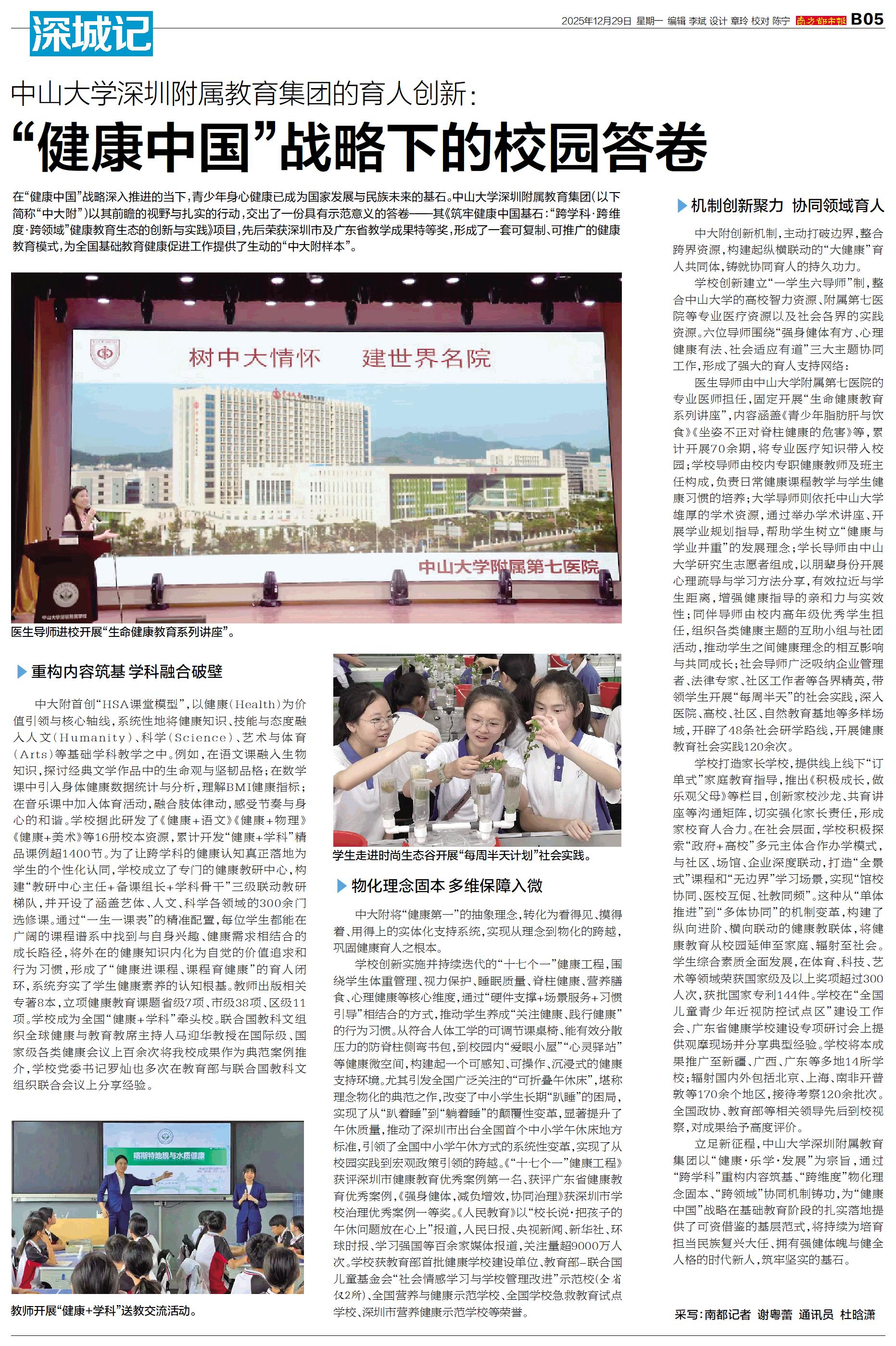 在“健康中国”战略深入推进的当下,青少年身心健康已成为国家发展与民族未来的基石。中山大学深圳附属教育集团(以下简称“中大附”)以其前瞻的视野与扎实的行动,交出了一份具有示范意义的答卷——其《筑牢健