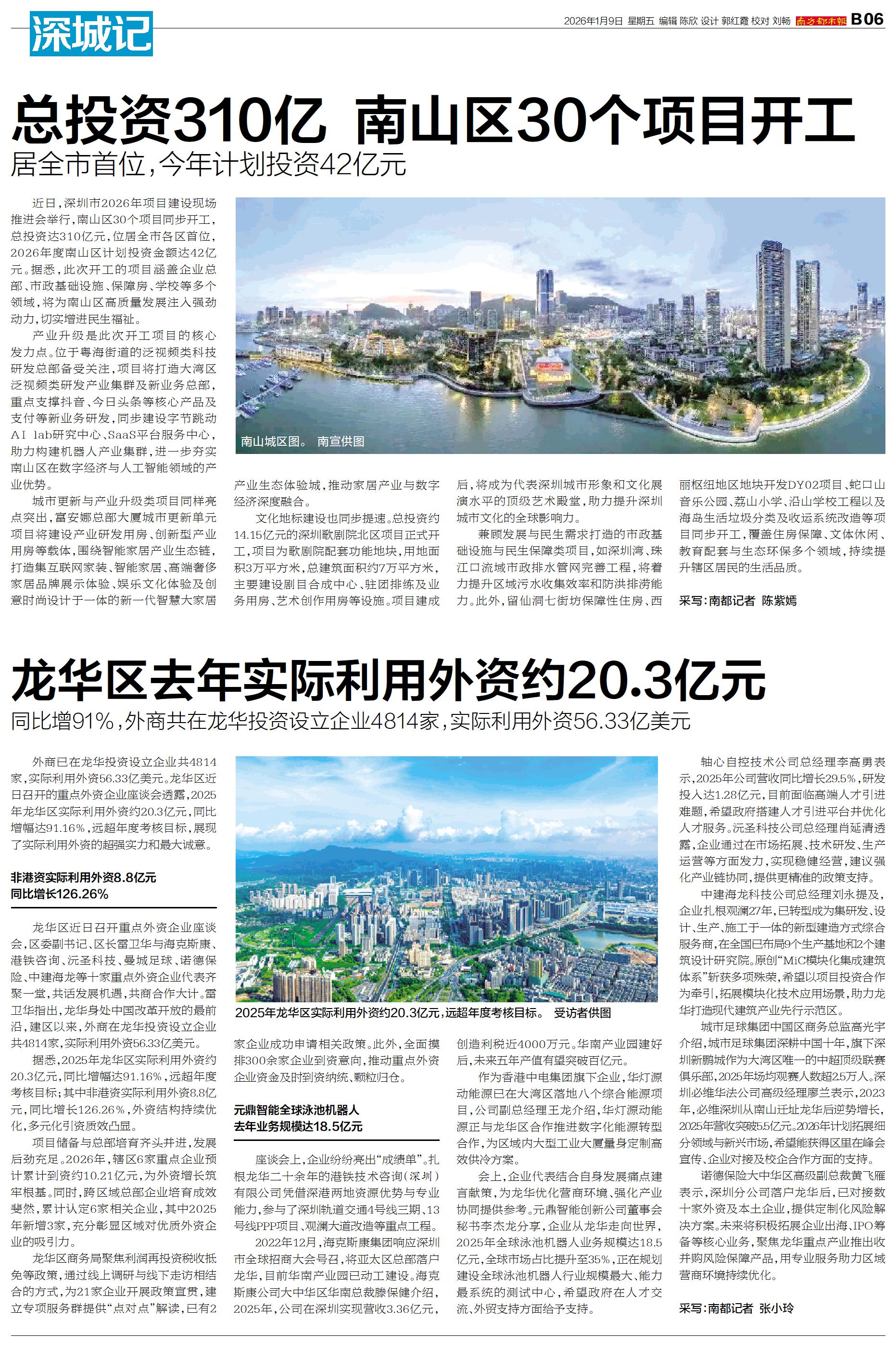 据悉,2025年龙华区实际利用外资约20.3亿元,同比增幅达91.16%,远超年度考核目标;其中非港资实际利用外资8.8亿元,同比增长126.26%,外资结构持续优化,多元化引资质效凸显。
