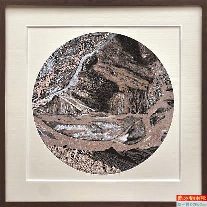 《峡谷奇光》系列作品粤绣(珠绣)。