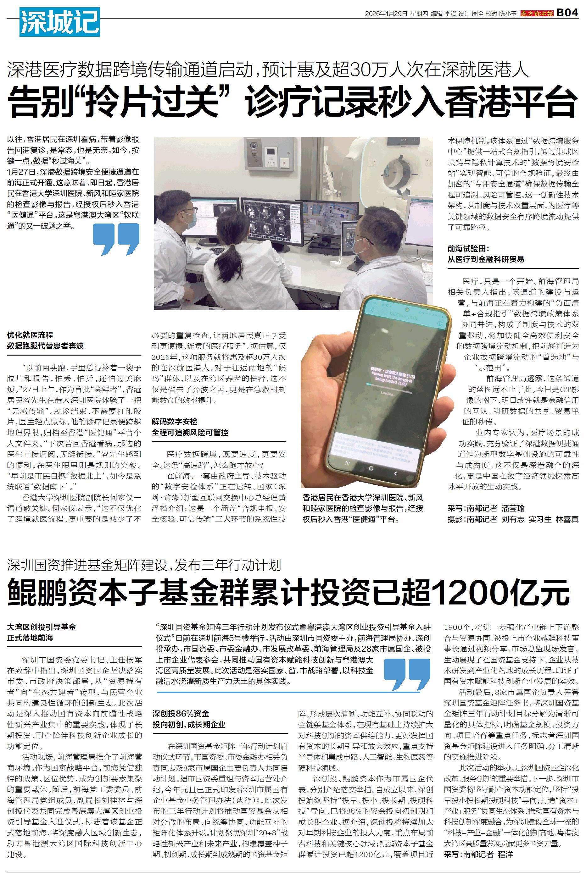 以往,香港居民在深圳看病,带着影像报告回港复诊,是常态,也是无奈。如今,按键一点,数据“秒过海关”。 1月27日,深港数据跨境安全便捷通道在前海正式开通。这意味着,即日起,香港居民在香港大学深圳
