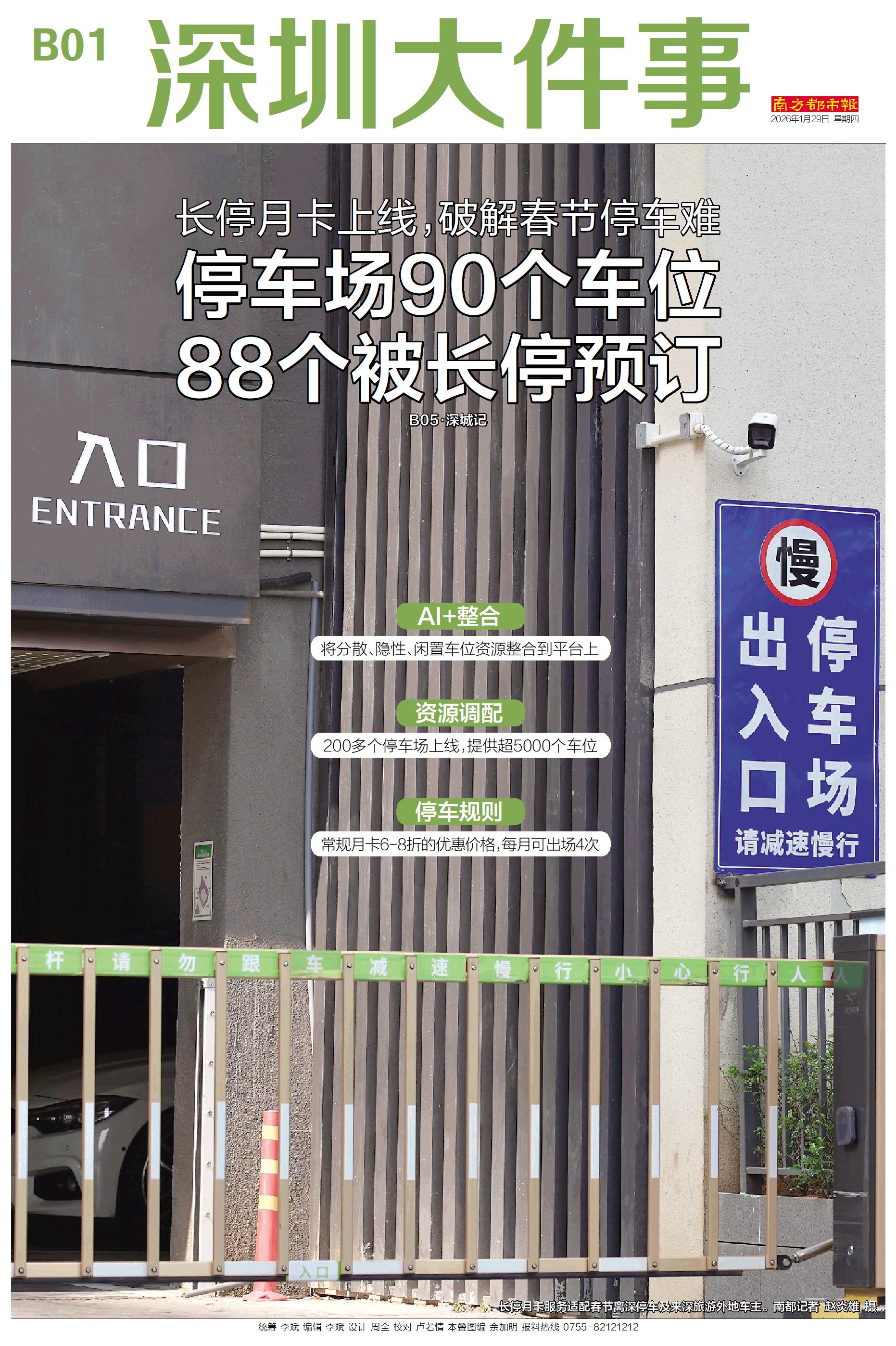 AI+整合 将分散、隐性、闲置车位资源整合到平台上 资源调配 200多个停车场上线,提供超5000个车位 停车规则 常规月卡6-8折的优惠价格,每月可出场4次 B05·深城记