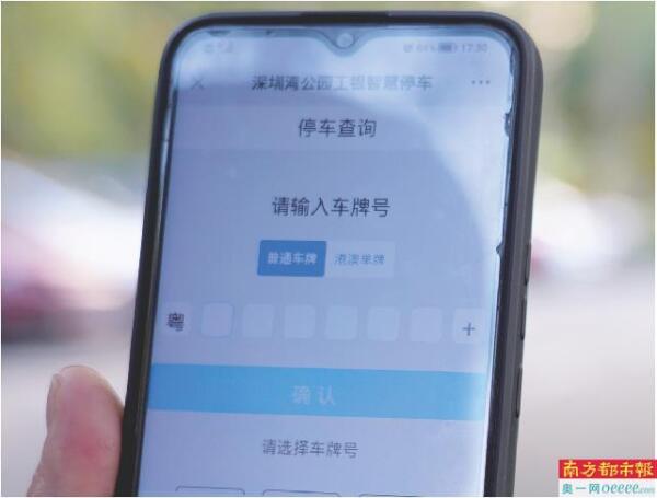 智慧停车系统手机界面。