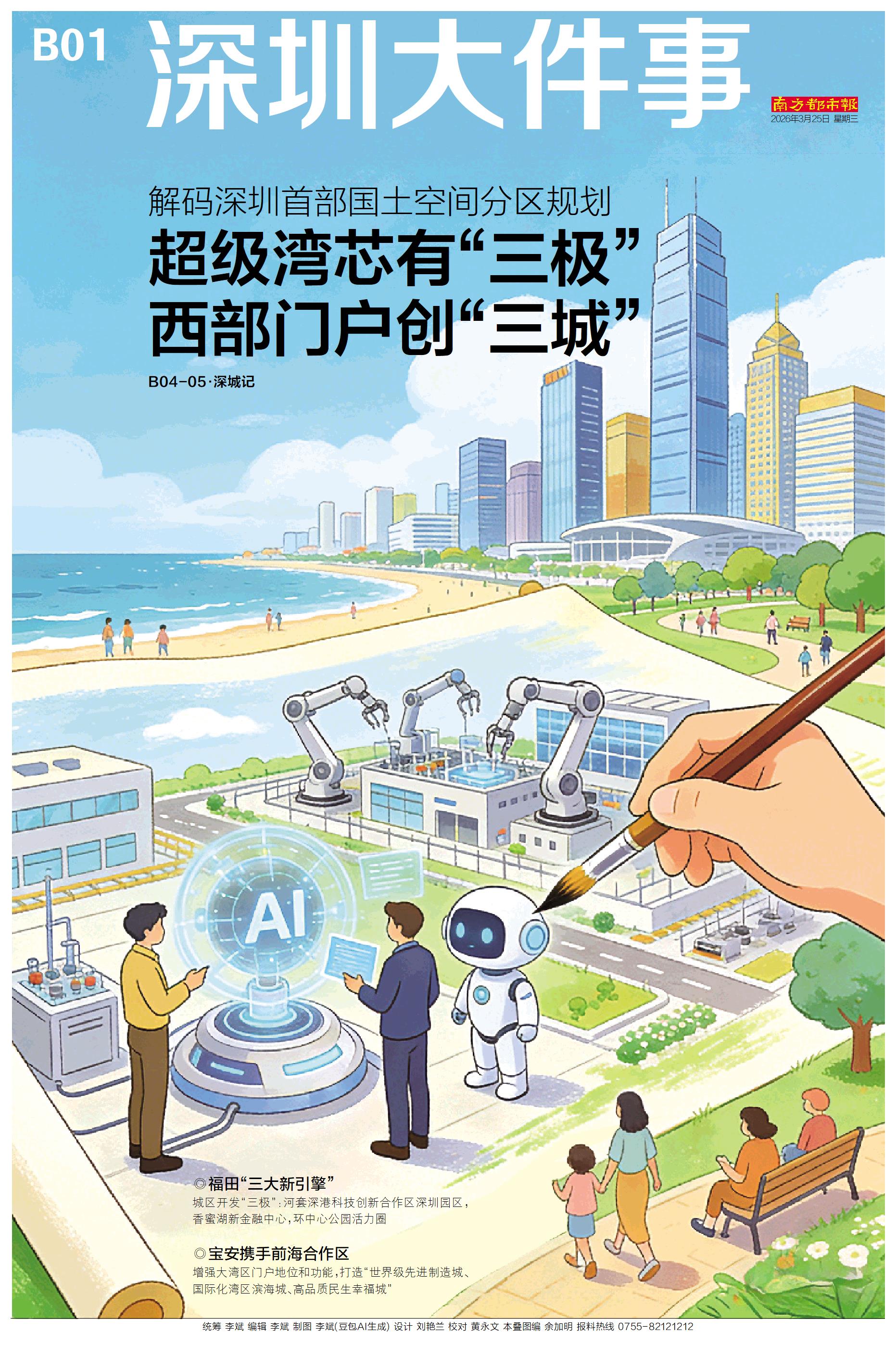 ◎福田“三大新引擎” 城区开发“三极”:河套深港科技创新合作区深圳园区,香蜜湖新金融中心,环中心公园活力圈 ◎宝安携手前海合作区 增强大湾区门户地位和功能,打造“世界级先进制造城、国际化湾区