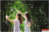 刚踏入5月,东莞的桑拿天像提前进入酷夏。两位裙装少女在植物园里用泡泡机自拍,甚是美好。南都记者 刘媚 摄
