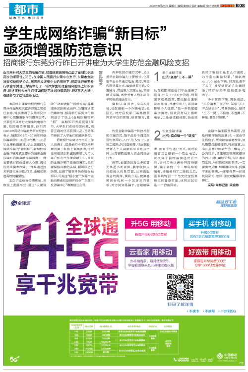 近年来针对大学生的电信诈骗、校园借贷骗局等凸显了金融知识进高校的重要性。23日,在中国人民银行东莞中心支行、东莞市金融消费权益保护协会、东莞市反诈骗中心的指导下,招商银行东莞分行联合东莞理工学院举行了