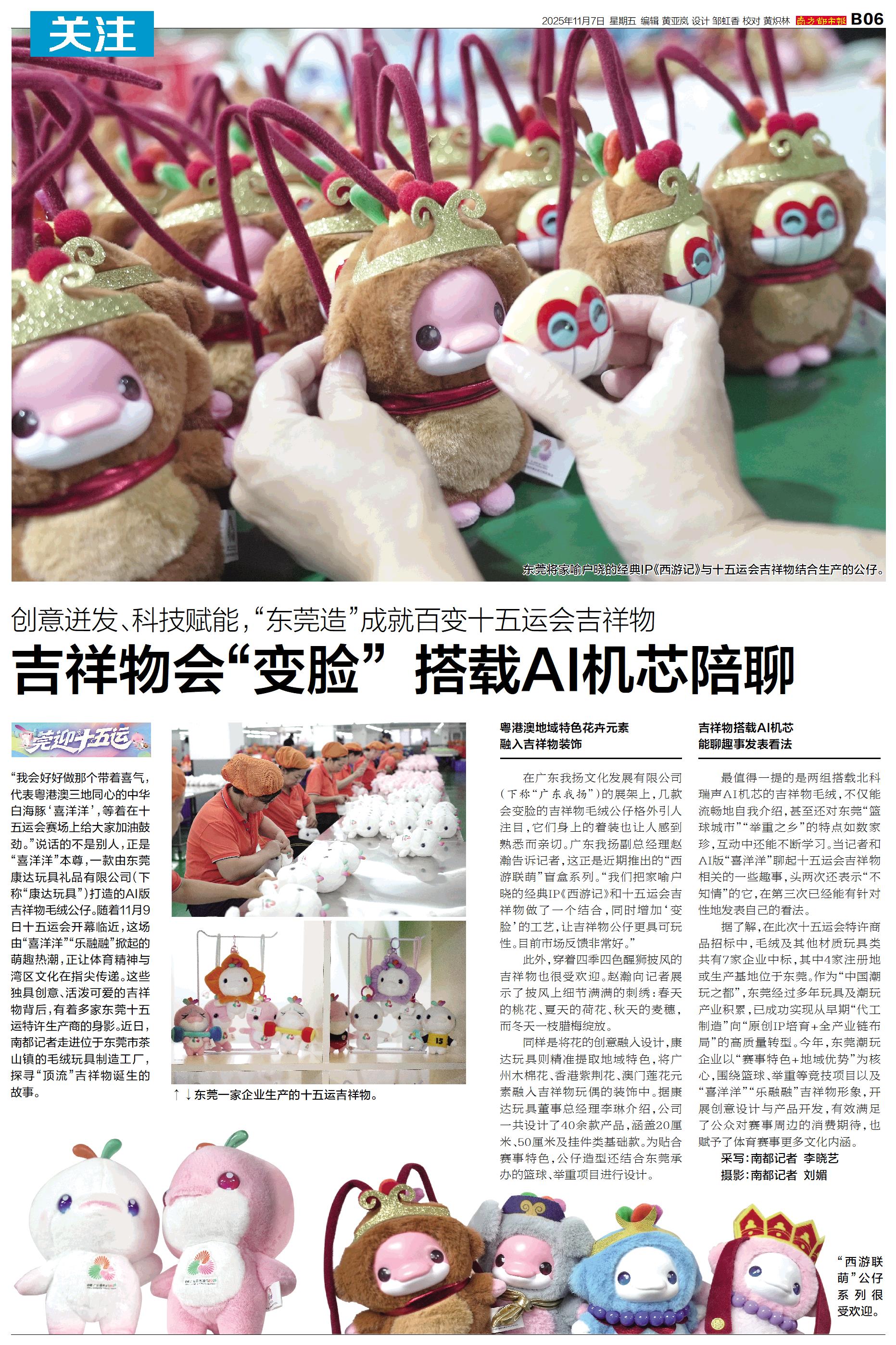 “我会好好做那个带着喜气,代表粤港澳三地同心的中华白海豚‘喜洋洋’,等着在十五运会赛场上给大家加油鼓劲。”说话的不是别人,正是“喜洋洋”本尊,一款由东莞康达玩具礼品有限公司(下称“康达玩具”)打造