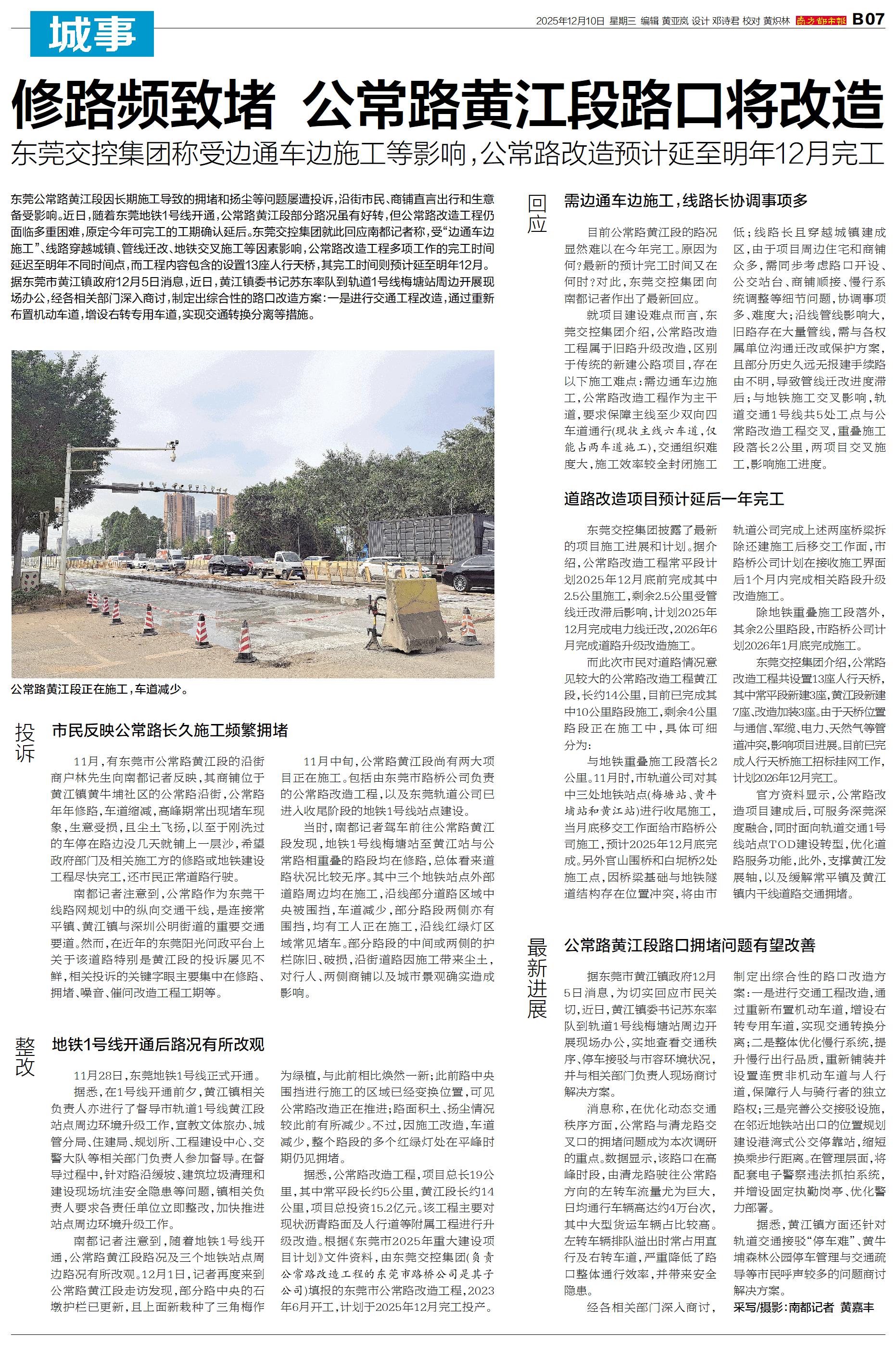 东莞公常路黄江段因长期施工导致的拥堵和扬尘等问题屡遭投诉,沿街市民、商铺直言出行和生意备受影响。近日,随着东莞地铁1号线开通,公常路黄江段部分路况虽有好转,但公常路改造工程仍面临多重困难,原定今年