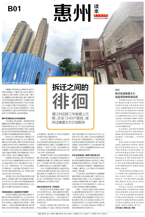 沿着惠州市政府前云山西路往东,驱车不用两分钟就驶入了惠民大道。这条大道将江北望江村分割为新寮、过沥和上寮、下寮几块。随着惠州城市建设发展,望江村鳞次栉比的村民自建房东南西北四个方向都已经被城市更新而建